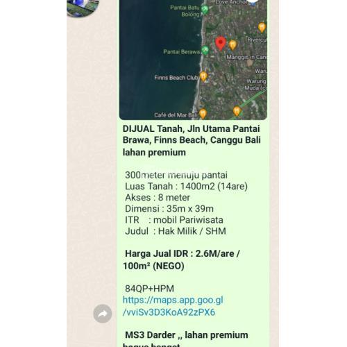 *DIJUAL Tanah, Jln Utama Pantai Brawa, Finns Beach, Canggu Bali lahan premium*