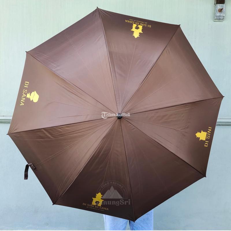 Supplier payung terlengkap, siap melayani pemesanan grosir dan ecer. Payung sablon cetak logo custom untuk souvenir ulang tahun, hadiah, kenang-kenangan. Hasil sablon payung berkualitas, bebas memilih warna, stok payung banyak pilihan.