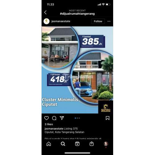 Listing 375 Ciputat, Kota Tangerang Selatan Dijual rumah 1 lantai dan 1,5 lantai minimalis di Ciputat harga paling ekonomis se-Tangsel!! Spesifikasi rumah sbb: Luas tanah 60 m2 Luas bangunan 36 m2 Kamar tidur 2 Kamar mandi 1 Listrik 1300 watt Carport Torn air Surat SHM . Selling Point: Deket dengan berbagai macam fasilitas umum, masjid, sekolah RS, pasar Ciputat dll Harga termurah dikelasnya Lingkungan aman & nyaman Good Investment . Akses Point: - 5 menit fasilitas sarana masjid & sekolah - 10 menit RS Buah hati & pasar Ciputat - 10 menit ke stasiun Sudimara, Tol Bintaro & halte busway serta kampus UIN & UNPAM - 20 menit tol BSD & Serpong - Cinere, MRT lb. Bulus _ _ _ _ _ _ _ _ _ _ _ _ _ _ _ _ _ _ _ _ _ Total 19 Unit Harga : - Rumah 1 lantai : 385 juta - Rumah 1,5 lantai : 418 juta _ _ _ _ _ _ _ _ _ _ _ _ _ _ _ _ _ _ _ _ _ Harga Sudah Termasuk : - BBN - BPHTB _ _ _ _ _ _ _ _ _ _ _ _ _ _ _ _ _ _ _ _ _ - DP : 5% Tenor : 15 - 20 Tahun - Cicilan : 2 - 3 Jutaan More info: Nama Marketing Jasmana Tlpn / Wa : 085711471258 #rumahciledug #dijualrumahciledug #rumahciledugdijual #jualrumahdiciledug #clusterciledug #clusterciputat #ciputattangerang #dijualrumahciputat #ciledugtangerang #tangerangselatan #tanggerangselatan #tangerang #tanggerang #tangsel #rumahpamulangdijual #rumahciputatdijual #jualrumahdiciputat #jualrumahdipamulang #propertytangsel #property #rumahdijual #ciputat #tangerang #rumahciputat #pamulang #ciledug #bintaro #pondokaren #jasmana67 #jasmananana