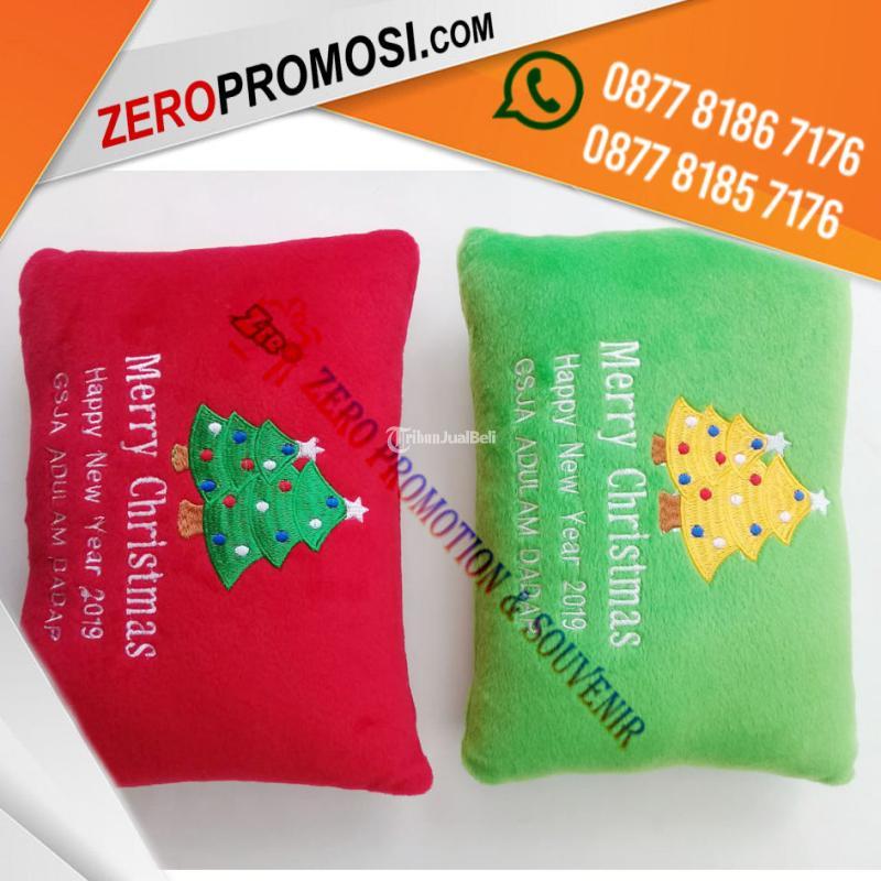 Hadiah Istimewa Souvenir Bantal Kotak Natal dengan Bordir Logo Unik