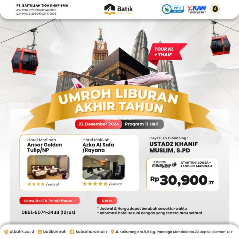 Umroh Liburan Akhir Tahun ⭐5 - 22 Desember 2024 (11 Hari) FREE Tour KL & Thaif Terbaik