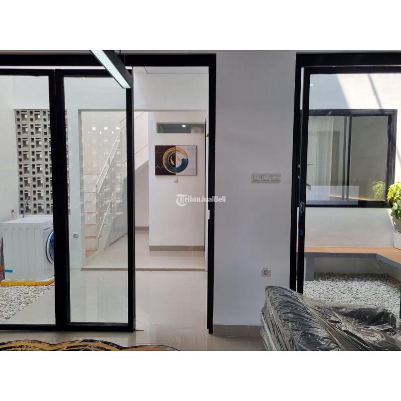 Beli, rumah industrial ini bonus furnish untuk lantai satu, lengkap dengan AC, sofa set, TV, kitchen set, kompor, kulkas, mesin cuci, tempat tidur, dan water heater!