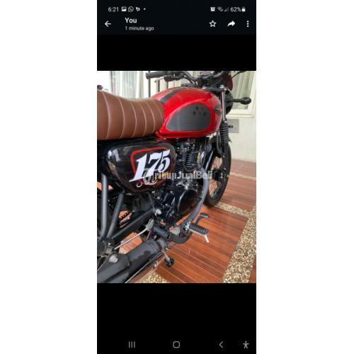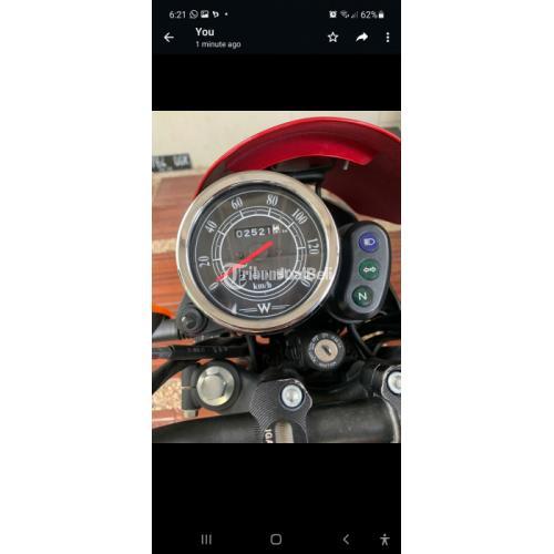 Jual Kawasaki W175 type Cafe Racer full ori sangat istimewa, th.2019, pemakaian Maret 2020, km. 2500, pajak baru sampai Maret 2023, baru service oli baru, ban masih 98% terlihat garis warna merah, Surat Komplit BPKB, Faktur, kunci duplikat ada.