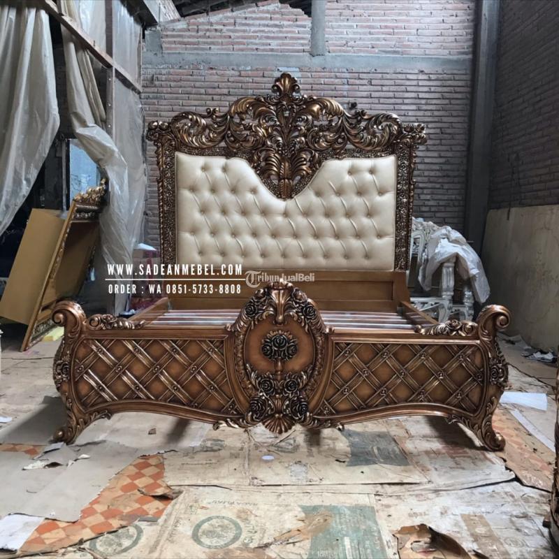 Headboard: Kepala dipan yang tinggi dengan ukiran megah sebagai fokus utama, memberikan kesan mewah dan elegan.