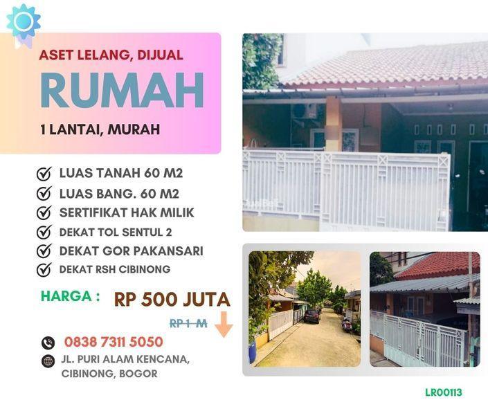 Dijual murah cepat Lelang Rumah 1 lantai di perumahan puri alam kencana 1 Blok F, kel. Nanggewer Kec. Cibinong, Bogor