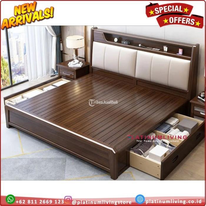 Tempat tidur dengan jok dipan kayu jati Furniture Jepara