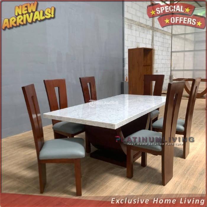 Meja Makan Marmer 200×100 Kayu Jati 6 Kursi , Meja Makan Marmer Asli