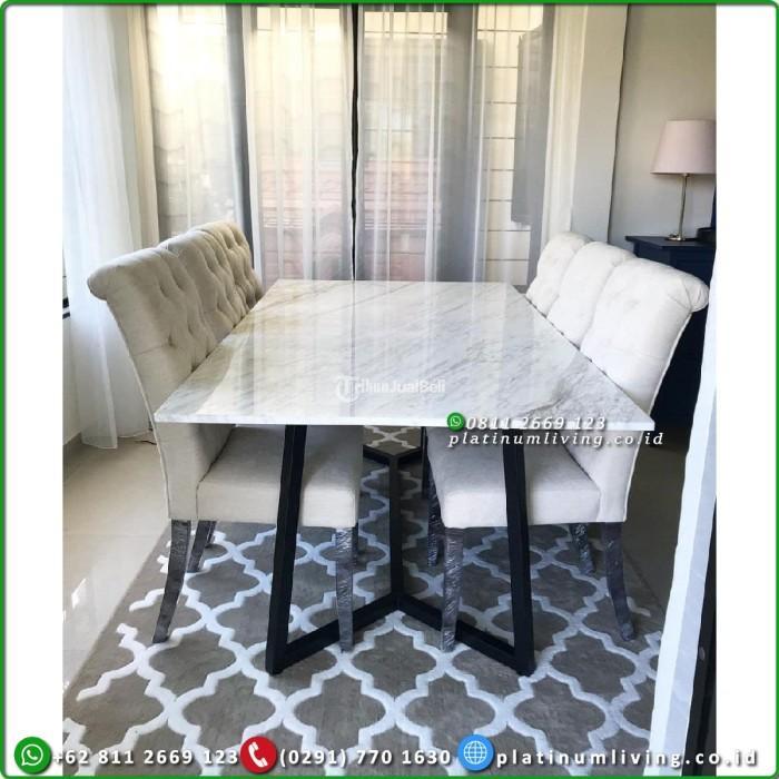 Meja Makan Marmer 200x90 Kaki Besi - Jepara