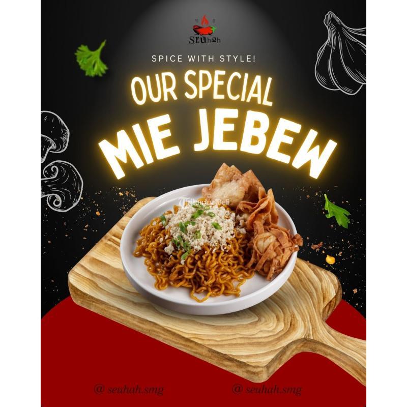 Mie Jebew - Mie kenyal dengan bumbu pedas gurih khas Seuhah. Cocok buat yang suka mie dengan cita rasa “nendang di lidah, tapi nagih di hati”.