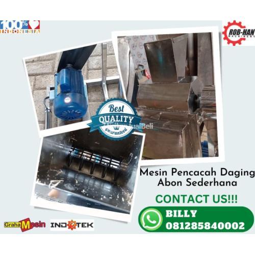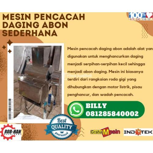 Mesin pencacah daging abon adalah alat yang digunakan untuk menghancurkan daging menjadi serpihan-serpihan kecil sehingga menjadi abon daging. Mesin ini biasanya terdiri dari rangkaian roda gigi yang dihubungkan dengan motor listrik, pisau penghancur, dan wadah pencacah. Daging dimasukkan ke dalam wadah pencacah, kemudian mesin dinyalakan sehingga pisau penghancur dapat menghancurkan daging menjadi abon. Mesin pencacah daging abon sering digunakan di pabrik-pabrik pengolahan daging atau di rumah-rumah produksi abon daging untuk mempercepat proses produksi dan menghasilkan abon yang lebih seragam.