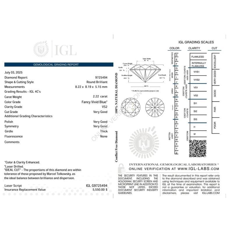 Natural Diamond Eropa 2.22 Ct Vivid Blue VS IGL USA - Surabaya