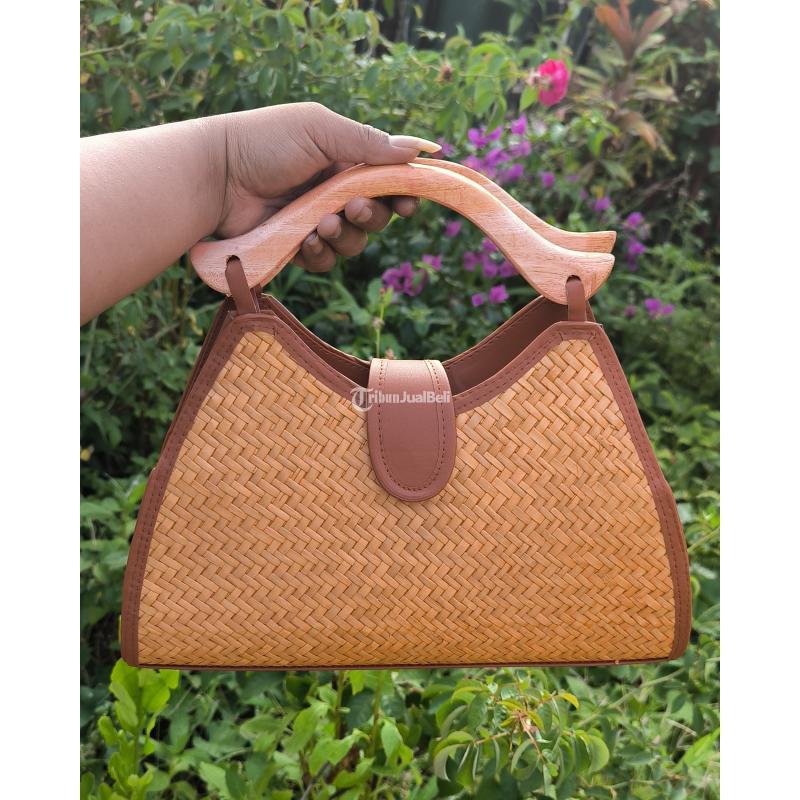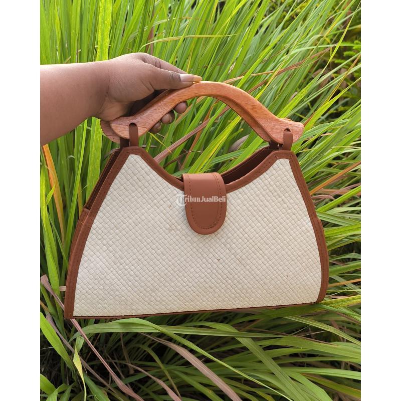 Tas Pandan Anyam Putih dan Kuning Rotan Bali Bag - Lombok Utara
