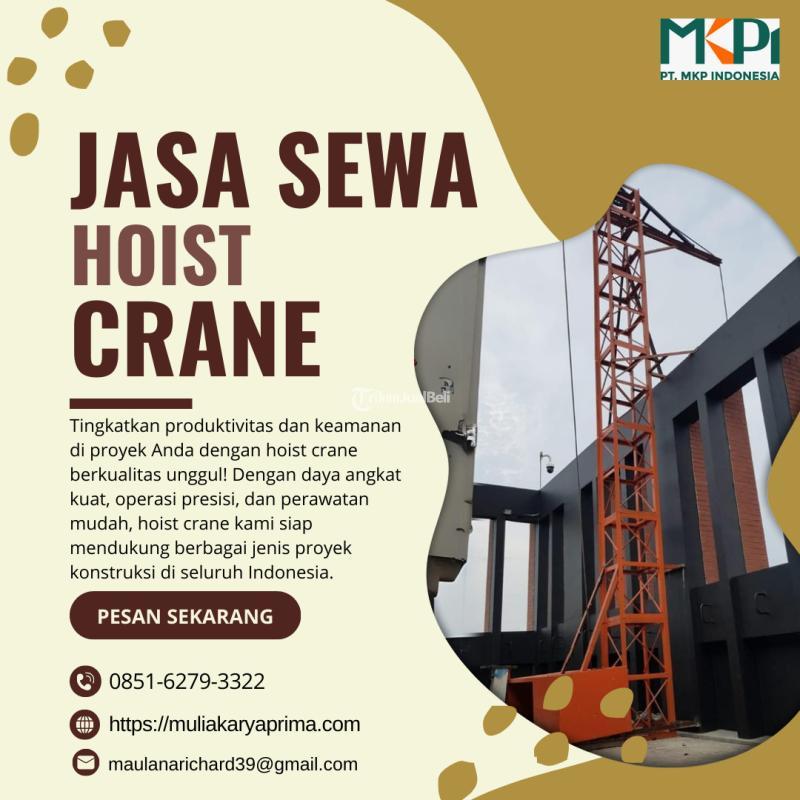 Hoist crane juga merupakan salah satu jenis crane yang bisa digunakan di dalam maupun di luar ruangan. Jenis crane satu ini dapat digunakan untuk mengangkat barang ataupun beban pada posisi tegak lurus atau horizontal di Dompu