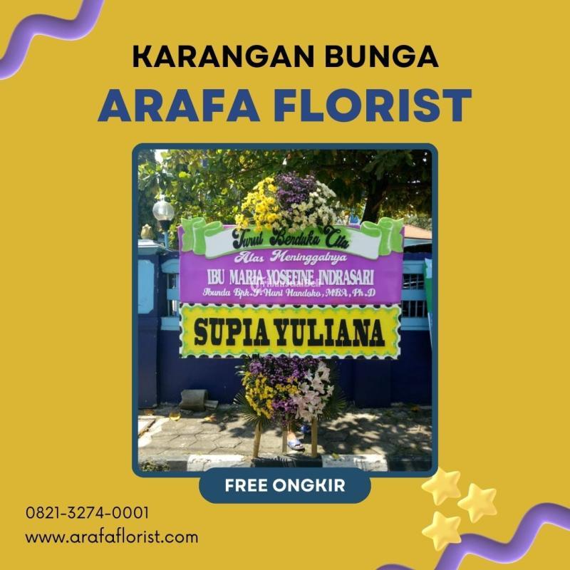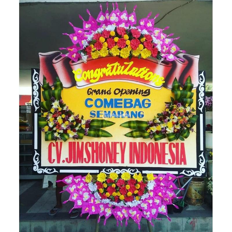 Warna-warna cerah dari bunga-bunga yang dipilih dengan cermat menciptakan kesan yang memikat mata. Di tengahnya, terdapat tulisan yang ditulis dengan indah, menggambarkan ucapan dukacita, penghargaan, atau pesan lainnya yang ingin disampaikan. Setiap detail dari karangan bunga ini dirancang dengan teliti, mulai dari tata letak bunga hingga komposisi warna yang harmonis.